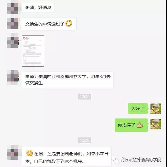好消息接連不斷,遠(yuǎn)方又傳來(lái)交換生的好消息。這是一個(gè)收獲的季節(jié),前期的努力在這一刻都開花結(jié)果了。、
